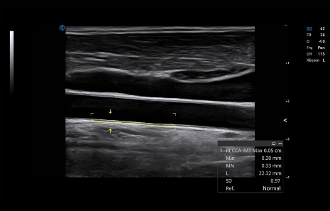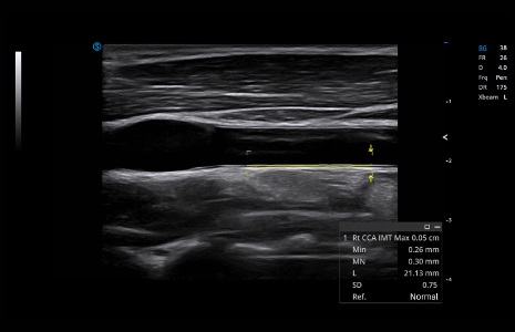 Auto IMT is capable of determining the level of vascular sclerosis. It allows clinicians to measure the intima faster, more easily and more accurately.