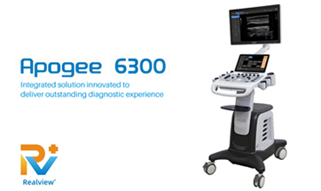 Apogee 6300 is a mid-high end color Doppler imaging system for general purpose powered by brand new platform Realview+. It supports confident decision making with exceptional images, ready measurement tools and efficient workflow.