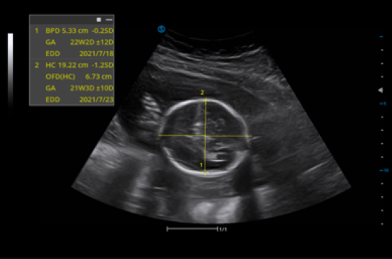 Automatic measurement of the common fetal biometry results such as BPD, FL, HL from the standard examination sections of fetus.