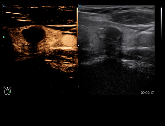 The blood flow perfusion status can be visualized in real time with contrast agent for efficient analysis of tumors in liver, thyroid and other organs. The timer function further enhances the diagnostic accuracy.